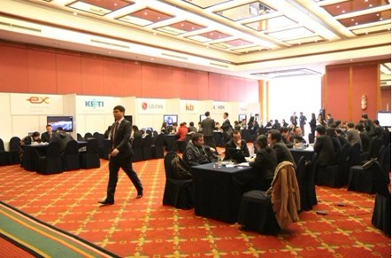 在下午的企业洽谈会中,中韩双方邀请了近百家企业参加。来自韩国的dinss、essys、hitecom、HDC、joynav、ex、KETI、LG CNS、kbits、MOVON等十家知名韩国智能交通企业,以展板与多媒体相结合的形式向来宾展示了ITS应用行业的最新案例、技术和产品。中韩双方企业在友好融洽的氛围下共同讨论技术方案,积极共商合作,为中韩双方企业初步合作奠定了良好的契机,并得到了与会嘉宾的一致好评。
