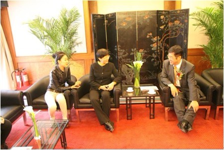 中国智能交通协会副秘书长金茂菁与韩国驻华大使馆公使参赞孟圣奎亲切交谈