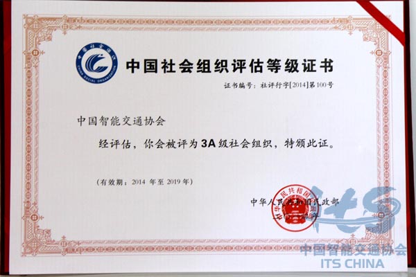 中国智能交通协会自2008年成立至今,一直致力于为会员和行业服务,荣誉的获得,不仅是对协会六年多来工作的肯定,也将进一步提高协会的公信力,鼓励协会一如既往地服务行业,服务社会。今后,中国智能交通协会将更加规范自身行为,进一步促进智能交通行业的规范化建设,为推动行业健康有序发展做出贡献。