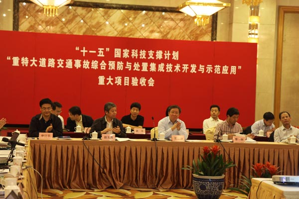 10月12日,科技部在北京组织专家对“十一五”国家科技支撑计划“重特大道路交通事故综合预防与处置集成技术开发与示范应用”重大项目进行了项目验收,经过审阅材料、听取汇报、质询提问等环节,验收专家组一致同意通过项目验收。科技部曹健林副部长、公安部交通管理局李江平部长、交通运输部公路局李华局长、总体专家组方守恩组长等有关领导,以及国家道路交通安全科技行动计划的总体专家组的成员和主要研究人员参加了验收会。