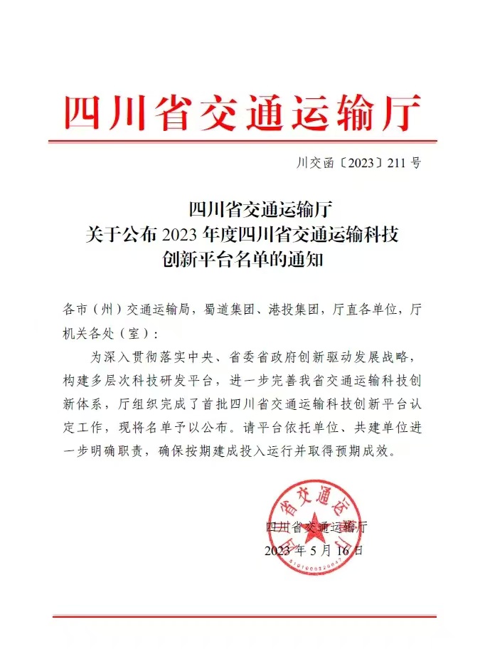 为全行业更好地了解掌握科技创新和数字交通工作情况,四川省交通运输厅编制了《四川省交通运输科技创新发展报告(2023年)》,现予发布。