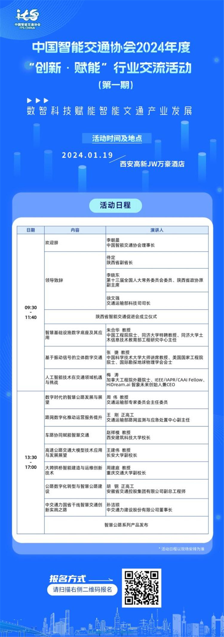 当前,全球新一轮科技革命和产业变革深入发展,为推进人工智能、物联网、大数据等数智科技与智能交通产业深度融合发展,助力智能交通行业高质量可持续发展。经研究,中国智能交通协会将于2024年1月19日在西安市举办2024年度第一期“创新·赋能”行业交流活动。
